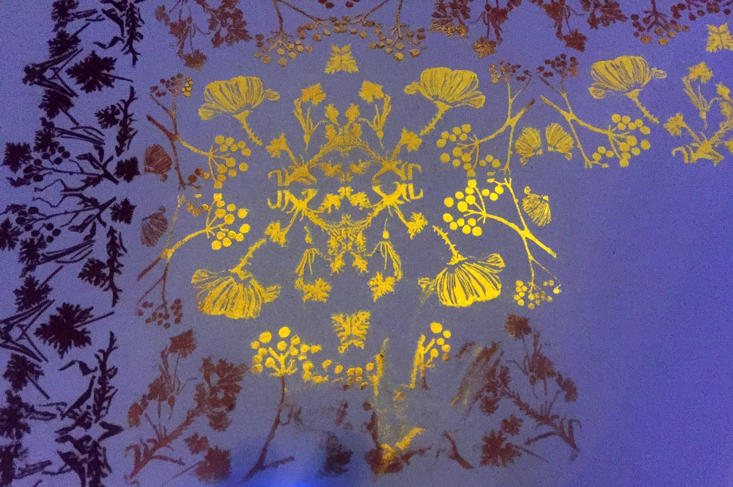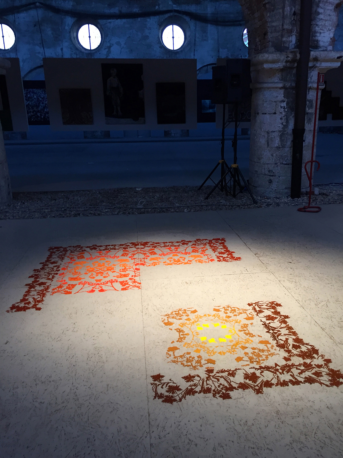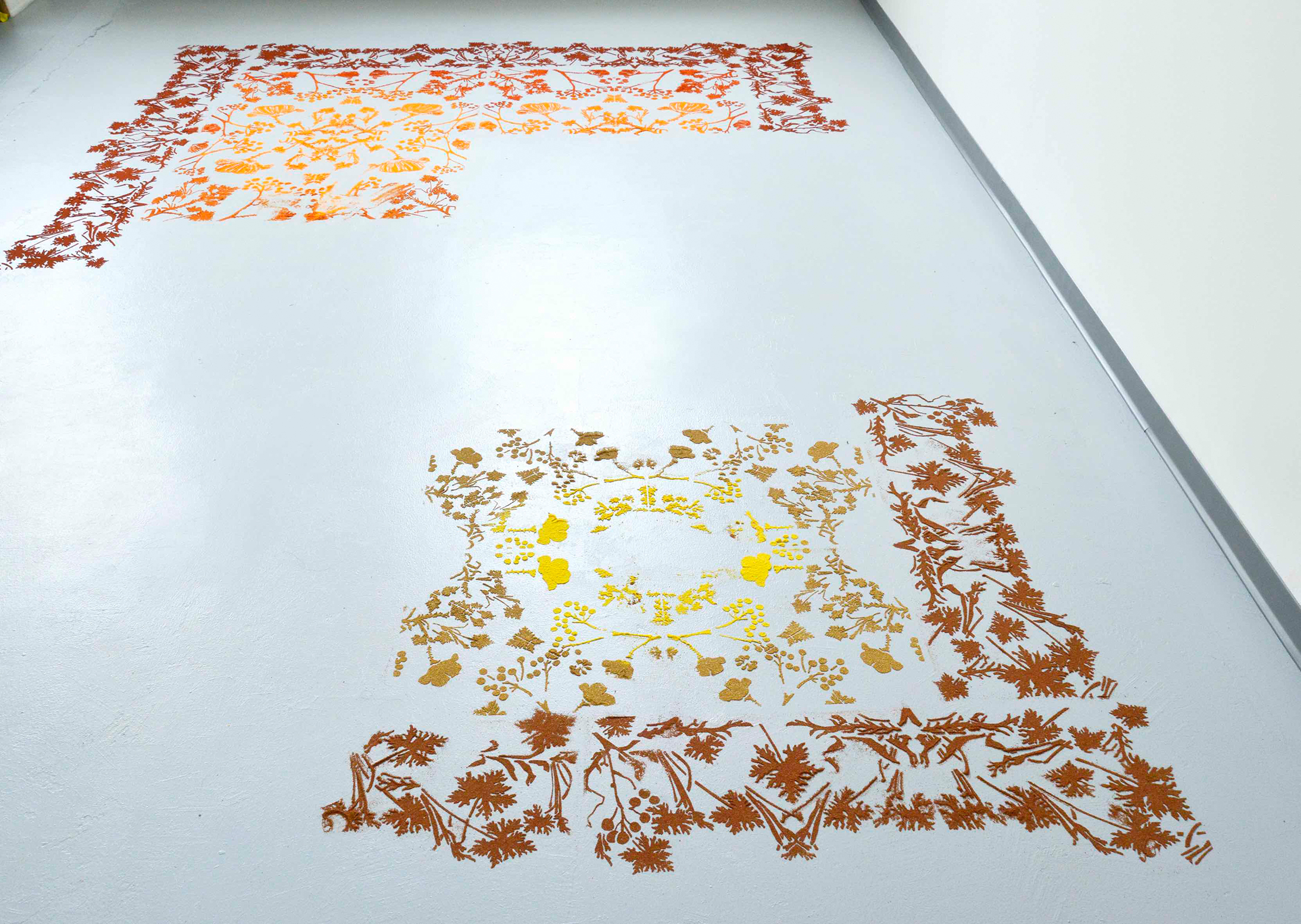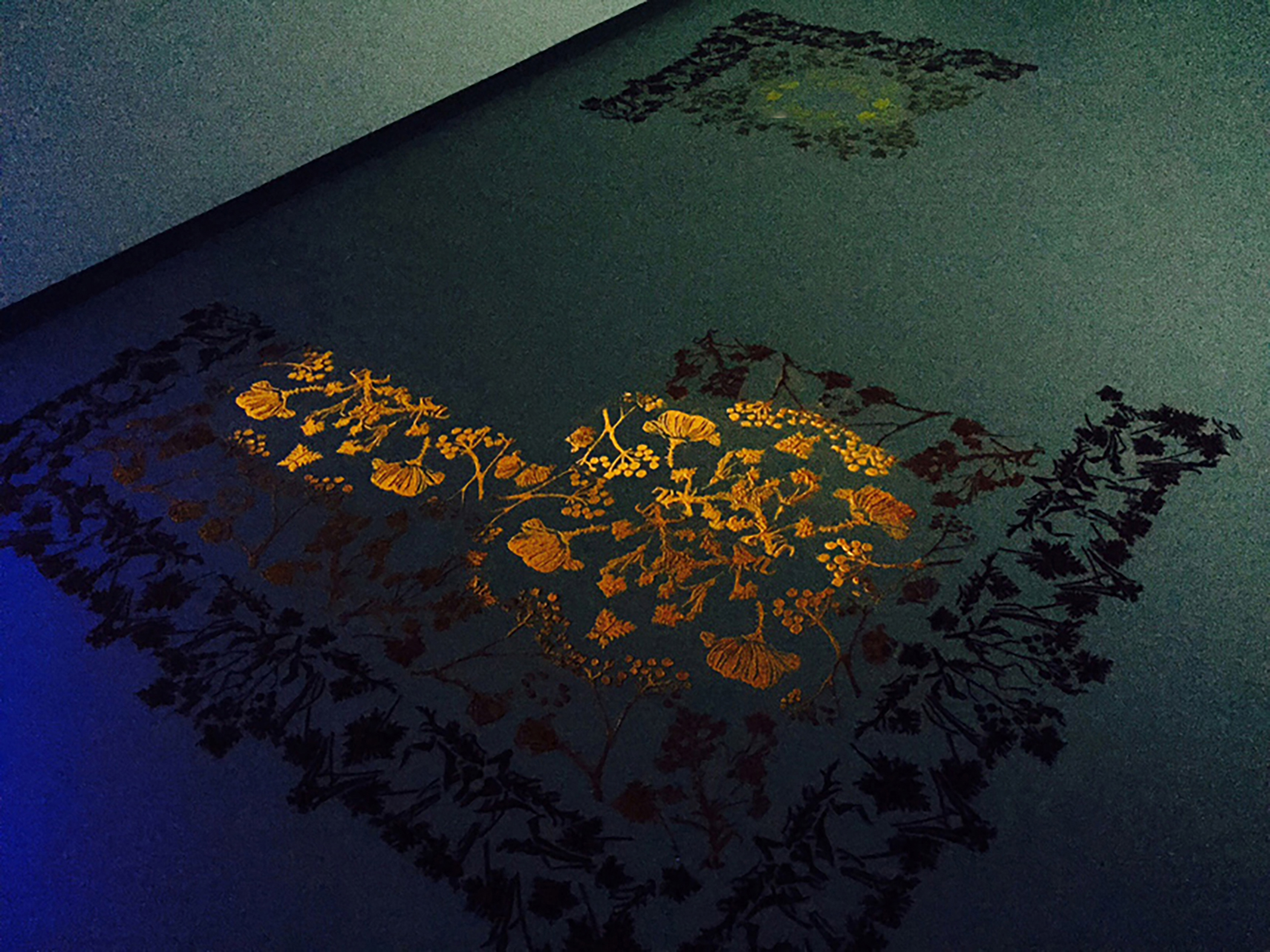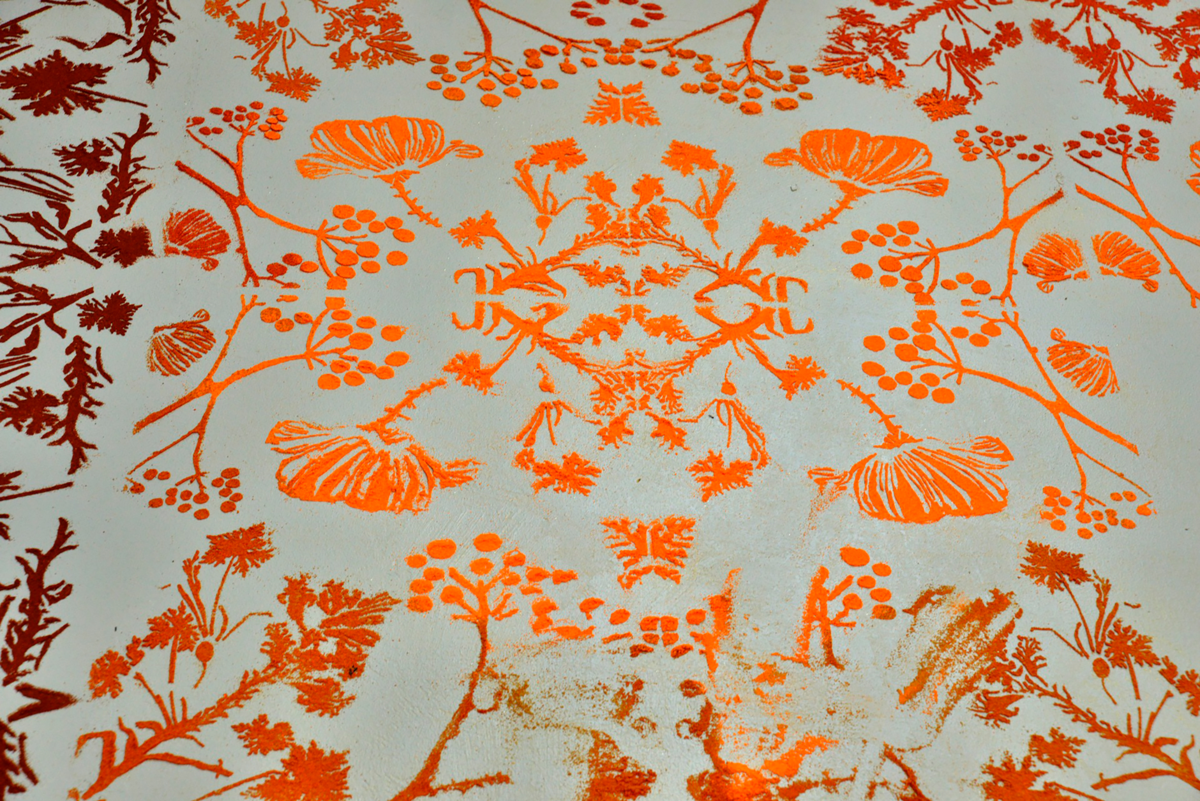 The Impossible Alignment of Two Fragments in Close Approximation, 10 ft x 6 ft, spices and fluorescent pigments, 2015